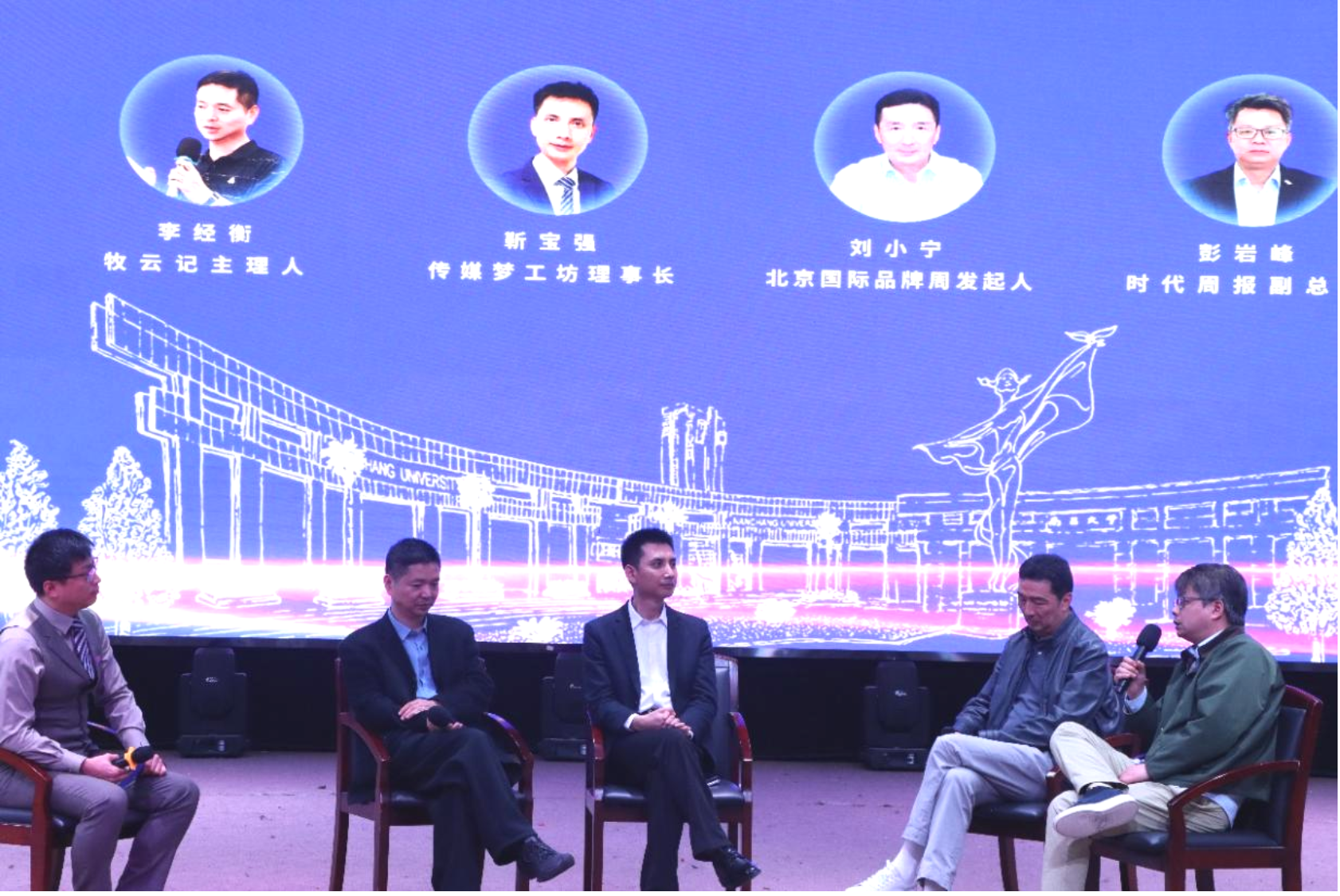 校党委常委、宣传部部长徐亮,校友工作办公室副主任王军花,北京国际品牌周发起人、北京校友会执行会长、82级校友刘小宁,经济参考报调查室主任王文志,牧云记主理人、91级校友李经衡,澎湃新闻副总编辑黄芳,直男财经创始人许云峰,尺度商业创始人、99级校友黄利明,传媒梦工坊理事长、04级校友靳宝强,广东时代传媒集团编委、时代周报副总编、05级校友彭岩锋与学院领导班子成员、师生代表齐聚一堂,共同见证这一兼具荣誉与成长意义的活动。