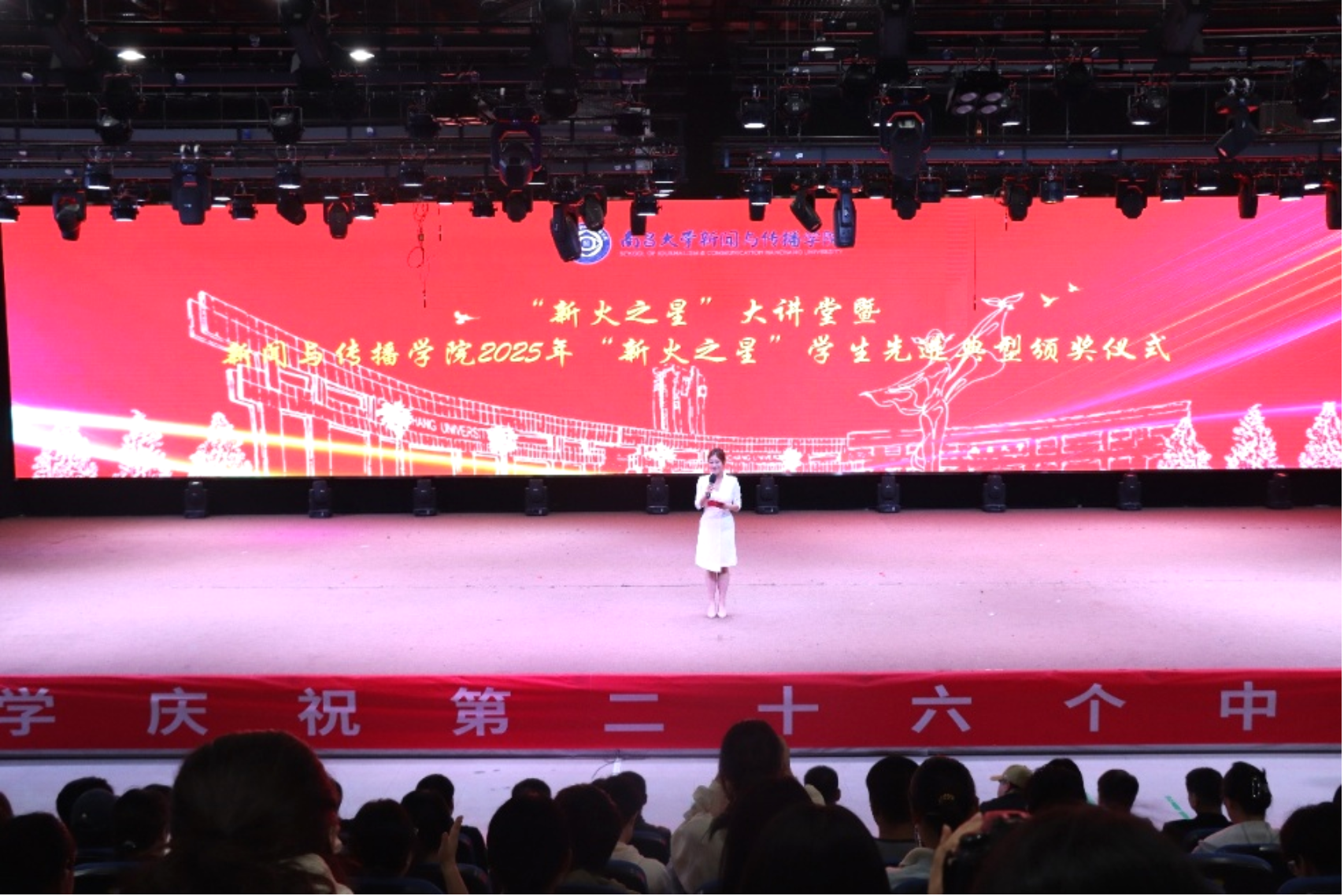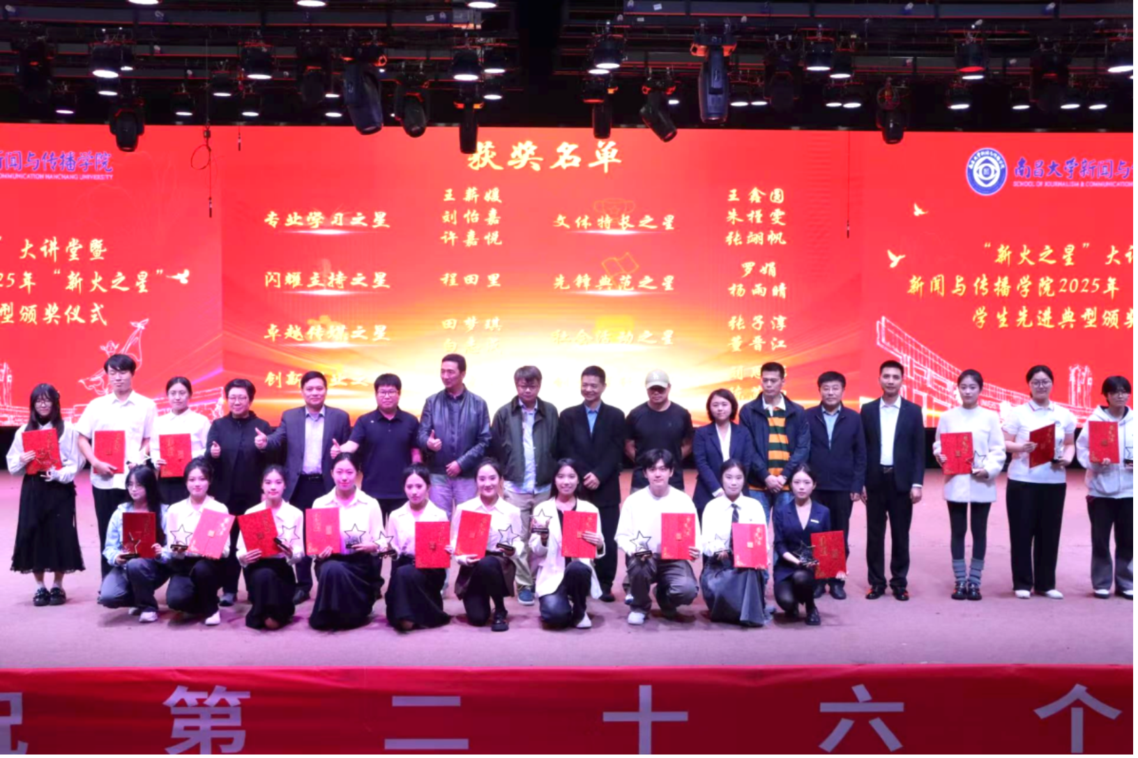 11 月 8 日下午,恰逢第 26 个中国记者节来临之际,新闻与传播学院于文法楼演播厅成功举办 “新火之星” 大讲堂暨 2025 年 “新火之星” 学生先进典型颁奖仪式。