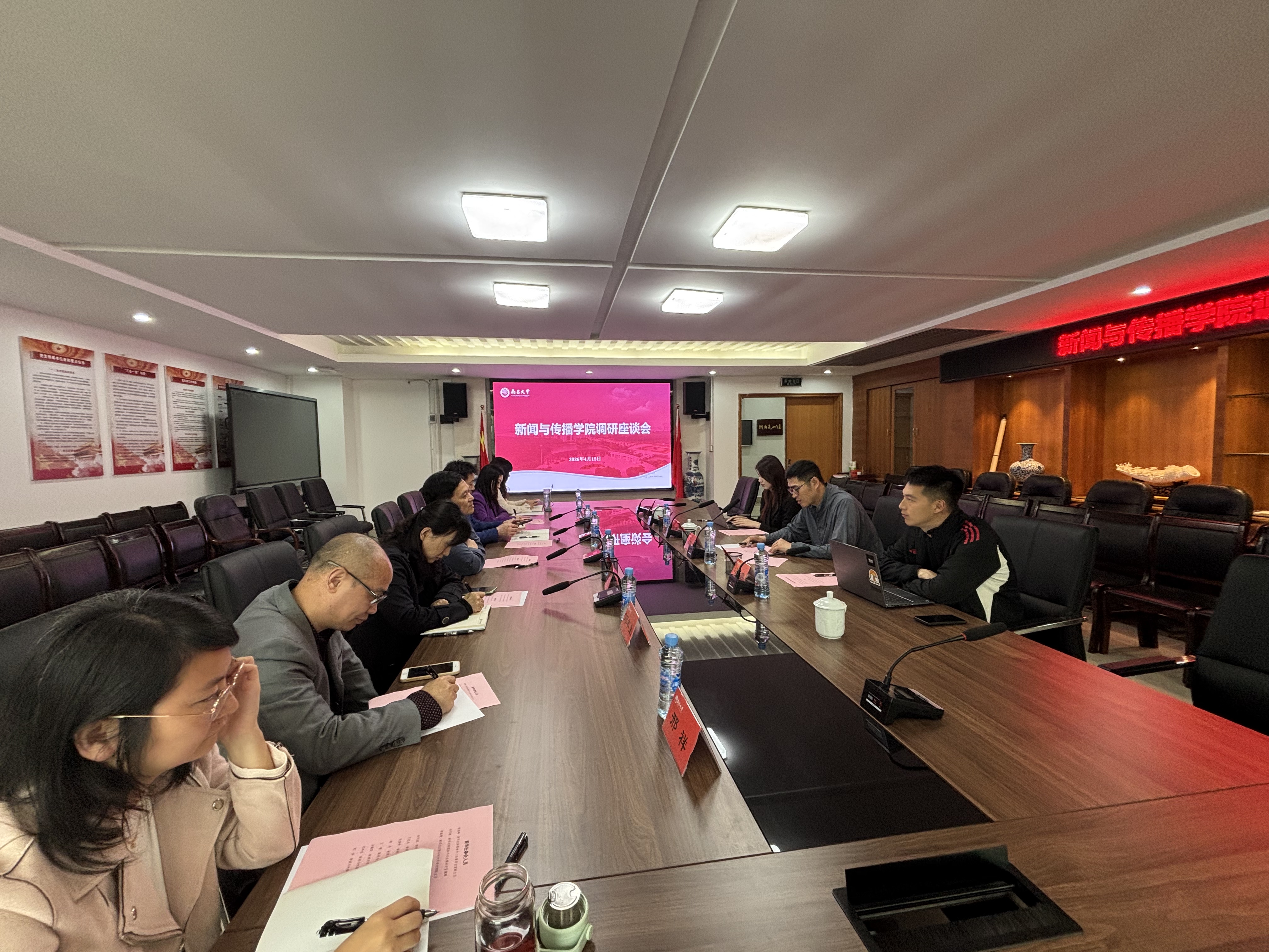 4月15日,新华社新媒体中心与新闻与传播学院在文法楼B230会议室召开调研座谈会。新华社新媒体中心全媒采访室副主任焦旭峰、编辑冯子雄、新华社江西分社对外采访部副主任陈毓珊,院党委书记欧阳润、各系主任和教师代表参加会议。座谈会由副院长王亿本主持。