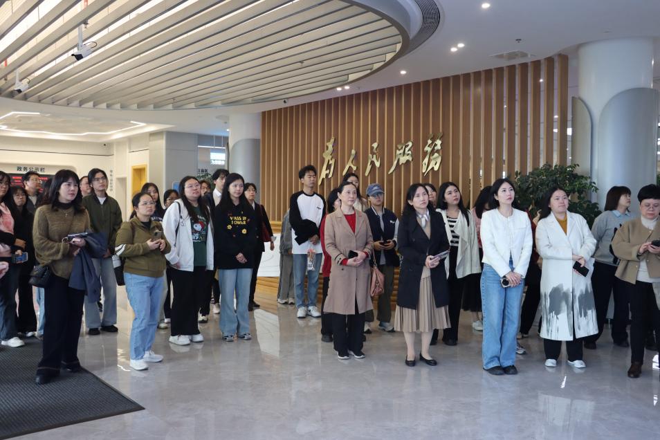 场景聚合:一堂生动的“工业化制片”实践课 下午14时40分,师生抵达时刻互动.赣江新区微短剧产业基地。在基地负责人龚恺瑜的引导下,参访团穿行于这个庞大的“造梦工厂”。二楼的居家实景、三楼的机场登机口与宴会厅、四楼的医院与法院……高度集约化的专业拍摄场景让书本上的“制片管理”概念变得可视可感。 “最令我印象深刻的,是基地通过空间规划对制片流程的优化,”新闻与传播学院博士生郑艳琦表示:“它将医院、办公室等高频率场景聚合,使转场能在极短时间内完成。这不仅是物理效率的提升,更深刻地揭示了媒介生产如何通过工业化流程,将创作不确定性转化为稳定、可控的协作模式。”