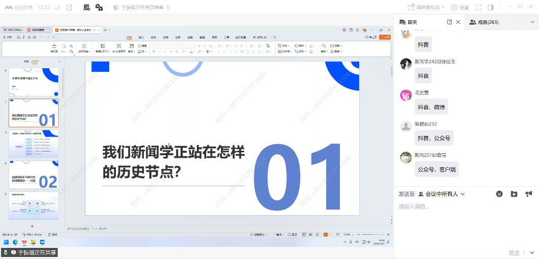 在互动交流环节,同学们积极提问,问题涵盖AI大模型在新闻生产中的伦理边界、人机协作的有效模式、AI工具的使用技巧等前沿议题。于振锴结合自身实践经验,逐一给予细致解答,并鼓励大家在拥抱技术的同时,始终保持新闻人的批判思维与人文关怀。 讲座尾声,胡丹教授对本次分享进行总结。她感谢于振锴校友带来的深度思考与实用建议,并勉励同学们主动适应时代变化,在学业中筑牢专业根基,在实践中锤炼核心能力,以积极心态面对行业变革,探索属于自己的人生坐标。 本次讲座不仅回应了同学们对专业前景的困惑,也通过案例与工具的结合,拓宽了大家的视野与方法。参与师生纷纷表示,分享内容兼具前瞻性与实操性,为今后的学习规划与职业发展提供了重要参考。(撰稿:边宇童)