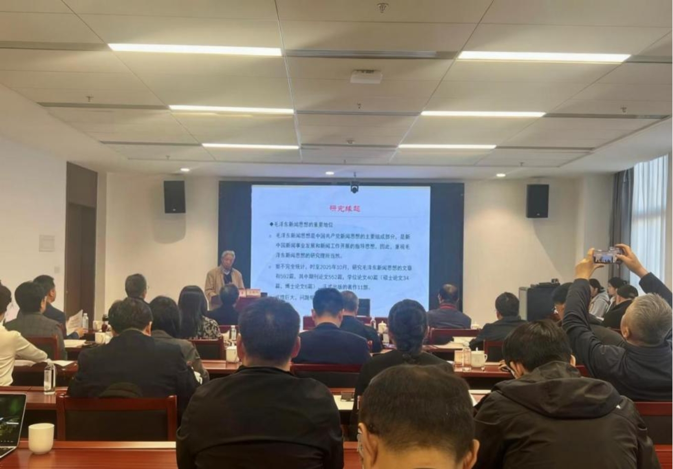 2025年11月13-16日,华中科技大学吴廷俊教授应邀到我院讲学,开展题为《十五五期间新闻传播学科发展展望》的学术讲座,参与学院十五五发展规划论证,参加“红色文化传播研讨会”,并做主旨发言。
