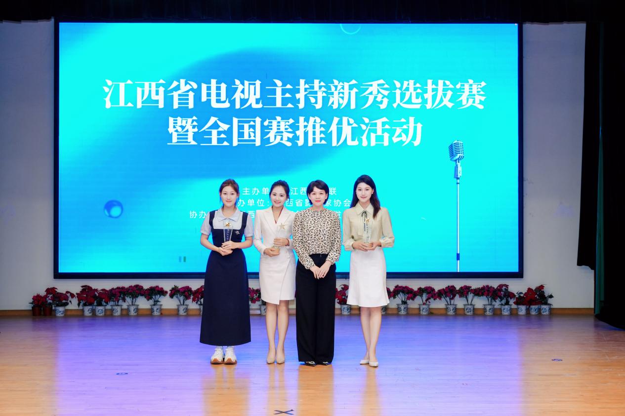 (本院讯) 金秋送爽,佳音传来。10月15日,在刚落幕的2025年江西省电视主持新秀选拔赛暨全国赛推优活动中,我院播音与主持艺术专业三名学子表现卓越,力挫群雄,包揽大赛前三名,创下该项赛事学院历史最佳成绩,充分展现了我院学子的专业风采。 本届大赛吸引了来自全省各地的近60名播音主持专业精英同台竞技,竞争异常激烈。比赛分为复赛与决赛两轮,通过自我介绍、模拟主持、自由辩论以及即兴演讲等环节,全面考察选手的语言功底、创意思维、舞台表现、综合素质及临场应变能力。我院播音与主持艺术专业22级张妙、25级李张忞娴和25级张玥莹三位同学沉着应战,她们以各具特色的主持风格和过硬的专业素养,征服了现场评委与观众,最终脱颖而出,成功包揽大赛前三名。 她们三人将代表江西省参加11月在福州举行的“第十七届海峡两岸电视主持新秀会”。 江西省文联党组成员、副主席赵卫萍 为三位选手颁奖 22级张妙 25级李张忞娴 25级张玥莹 全体参赛人员与嘉宾、评委合影留念