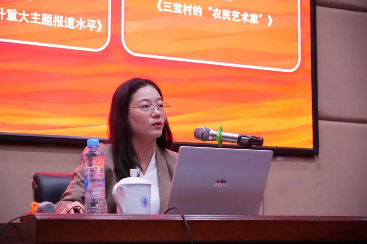 赵洪潭老师曾8次斩获中国新闻奖这一行业顶级奖项,讲座中,赵老师结合自身多年新闻一线实践经验与幕后研究经历,从“新闻精品生产的根本遵循”“基本方向”“实用攻略”三大板块展开分享,指出精品新闻需兼具思想深度与创新表达。 在案例解析环节,赵老师分享了多个极具代表性的新闻作品创作过程。针对104岁红军烈士遗孀的报道,团队通过策划“制作爱人瓷板画”,将静态故事转化为动态叙事,最终该作品获中国新闻奖一等奖,全网阅读量超5000万;聚焦乡村振兴主题时,她从“栽东村,栽西村一墙之隔却发展迥异”的细节切入,以对比手法挖掘基层治理现代化的核心逻辑,作品获省委书记肯定并斩获中国新闻奖二等奖;在国际传播领域,她抓住“非洲驻华使节探访井冈山神山村”的契机,通过外国使节视角展现中国脱贫经验,为国际传播报道提供了新范式。此外,她还分享了一些舆论监督作品的创作历程,强调记者需敢于突破“一致叫好”的声音,以深度调研揭示问题本质。
